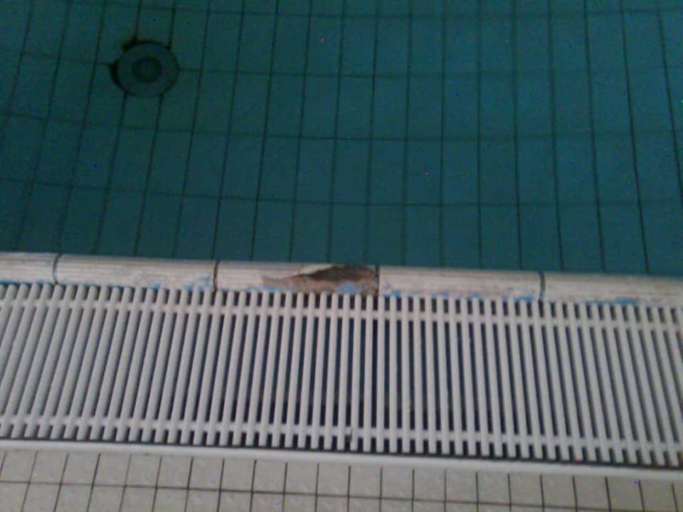 Kaputte Fliesen/Schwimmbadgerade der Fliesenrand am Pool sollte in Ordnung sein, denn hier besteht Verletzungsgefahr.