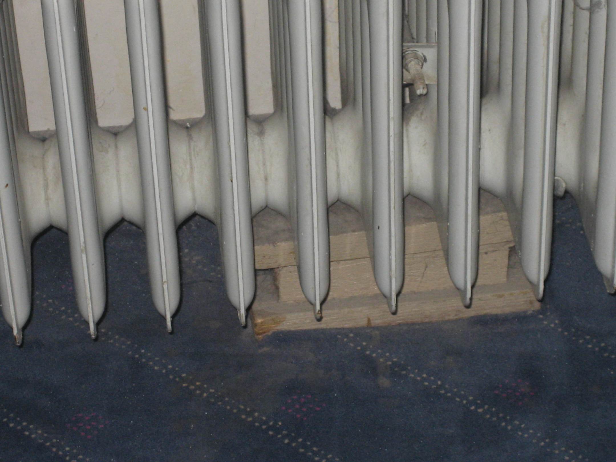 Heizung im Flurbereich mit Steinen abgestützt