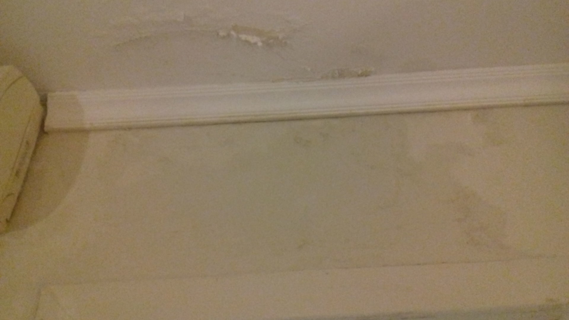 Nässeauswirkungen an Decke und Wand.