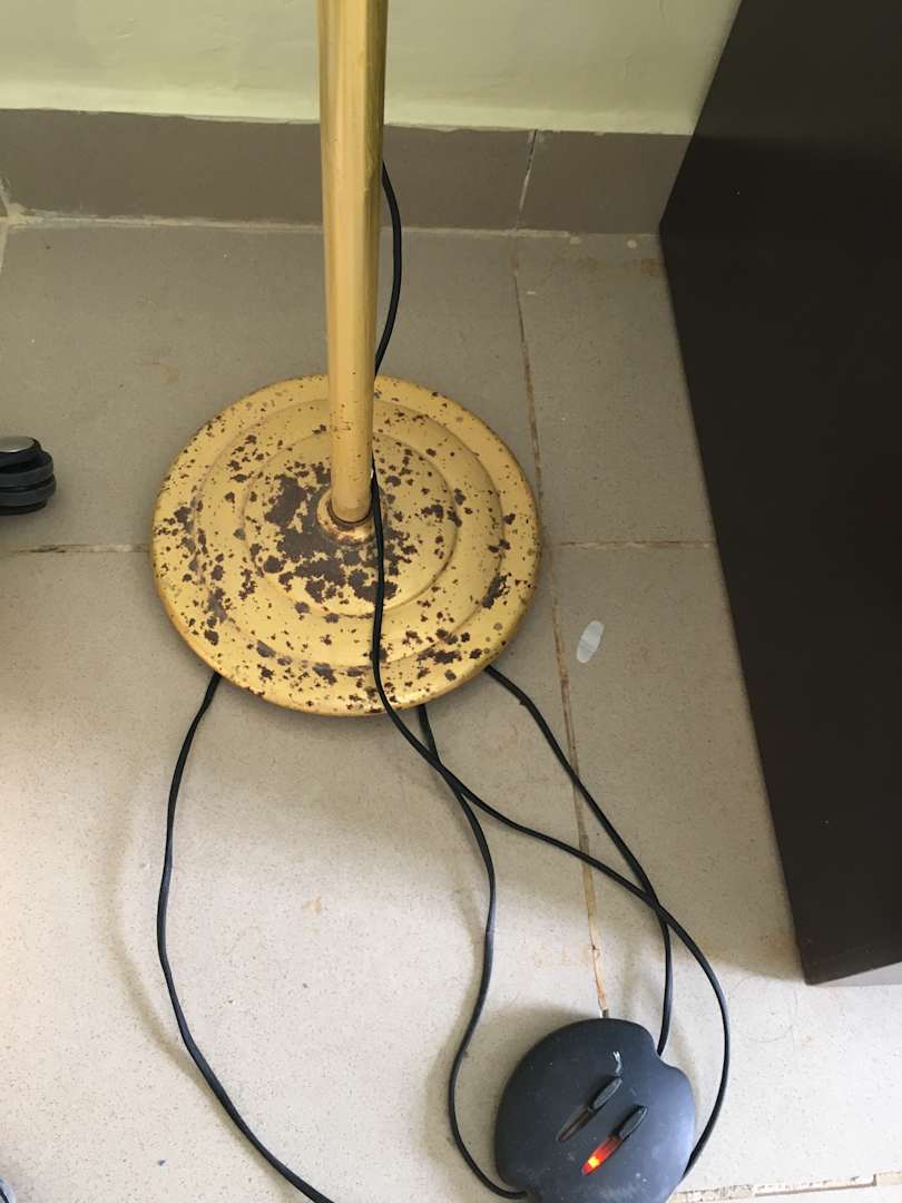 Stehlampe im Wohnbereich mit Rostflecken