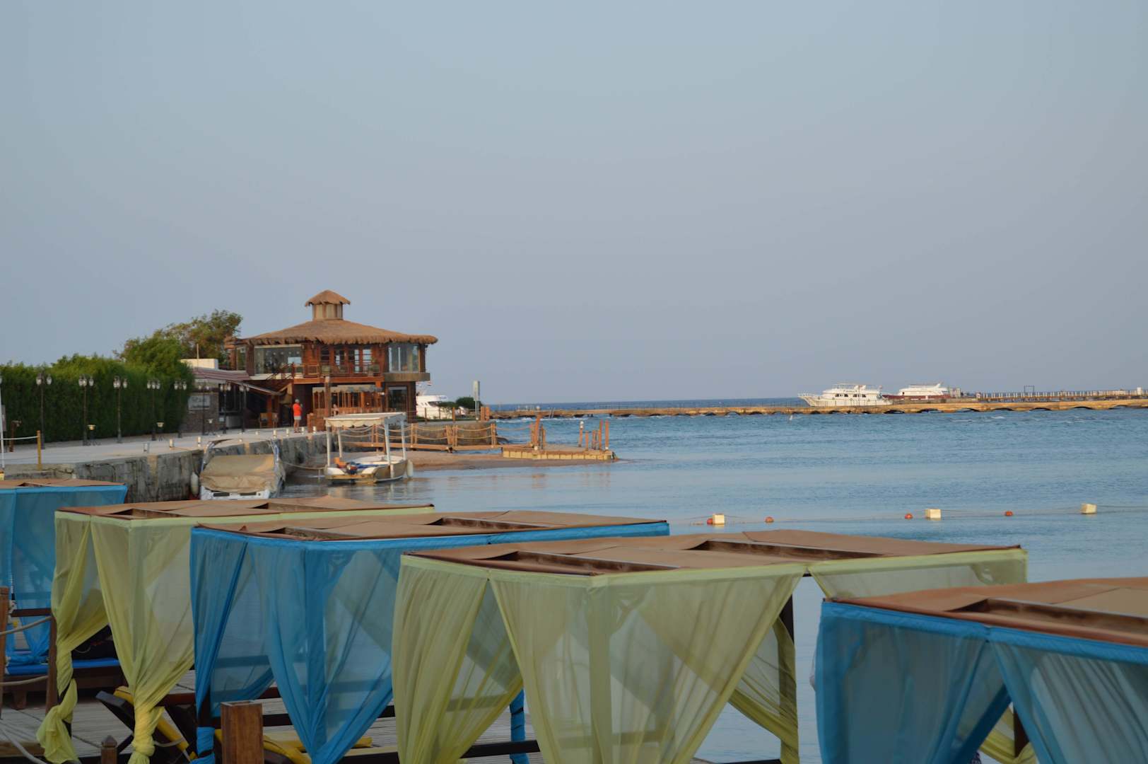 Blick zum Fischrestaurant und Strandabschnitt > 16