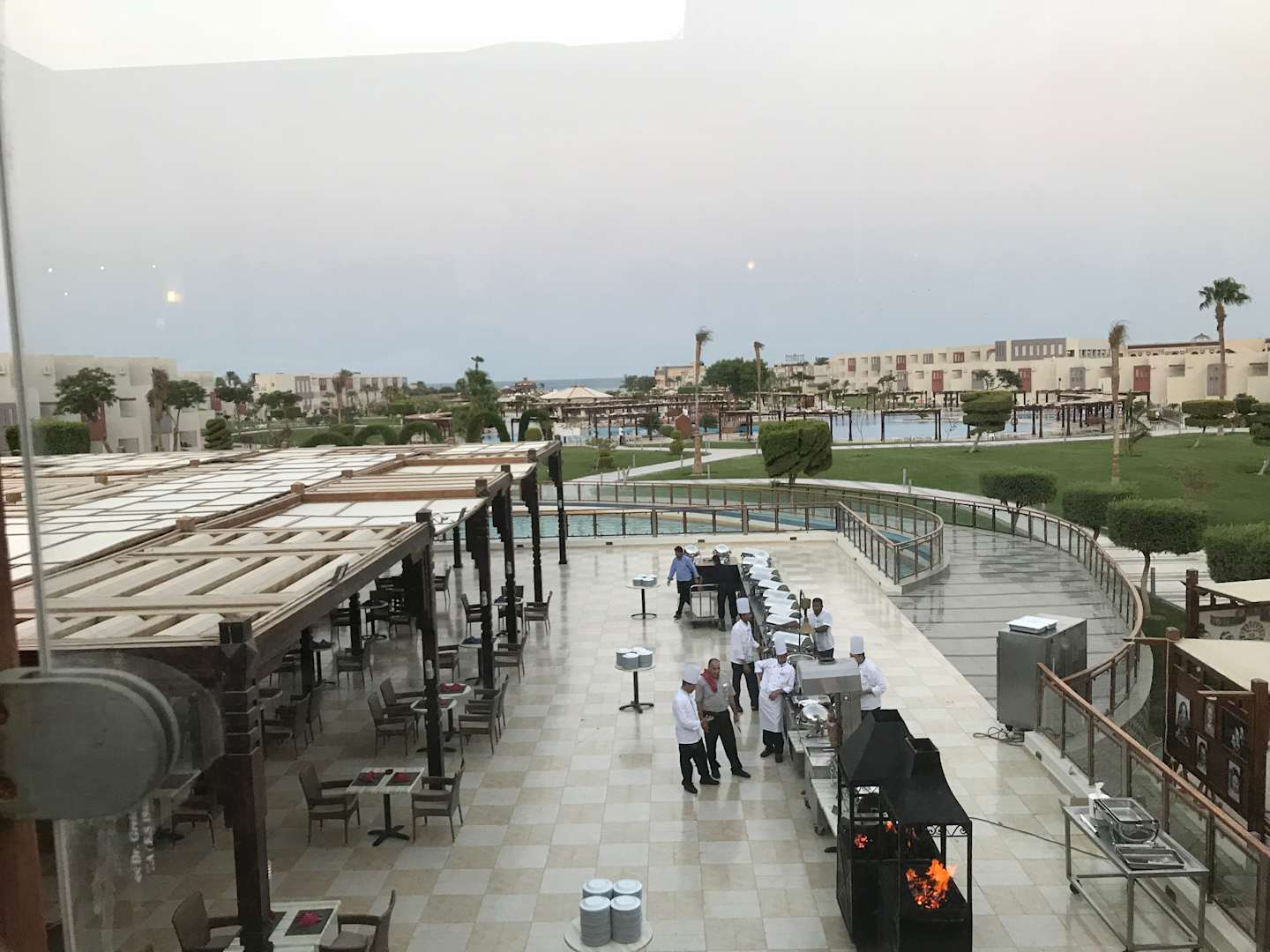 AusblickAusblick von der außenliegenden Lobby übers Buffet Restaurant auf die Poollandschaft
