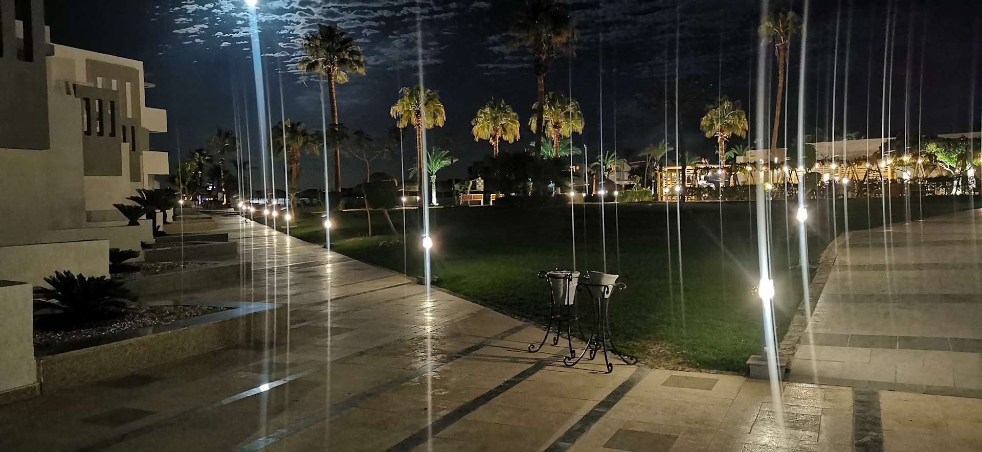 Die Gartenanlage am Abend