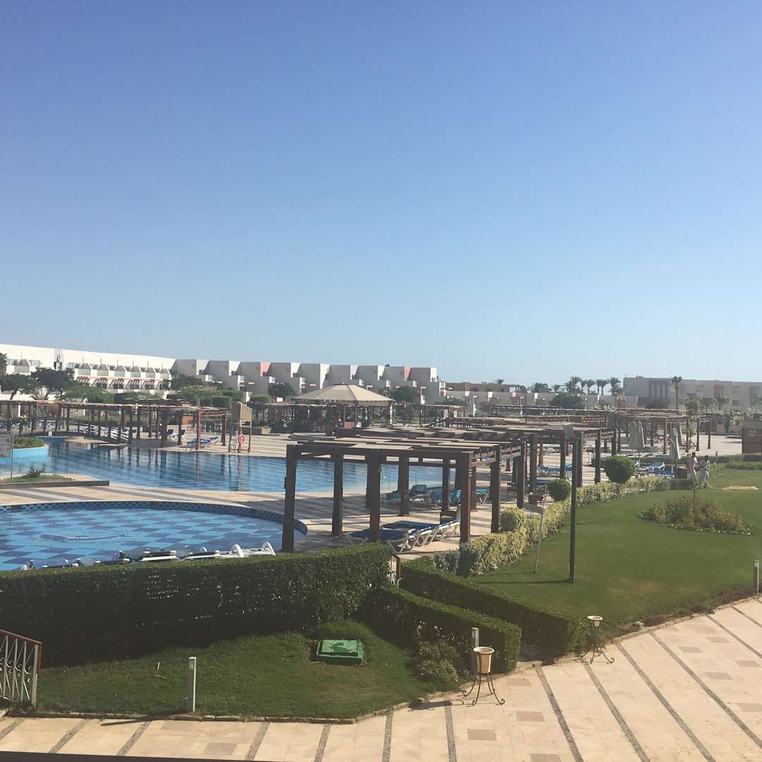 Ausblick vom Zimmer auf den Pool