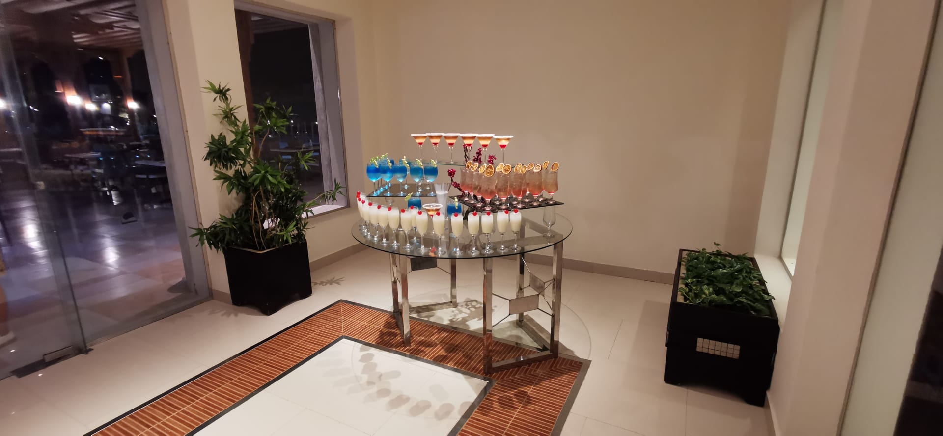 Der Eingang vom Buffet-Restaurant am Abend