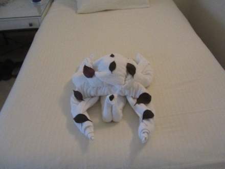 Ein aus Badetüchern hergerichteter Krebs