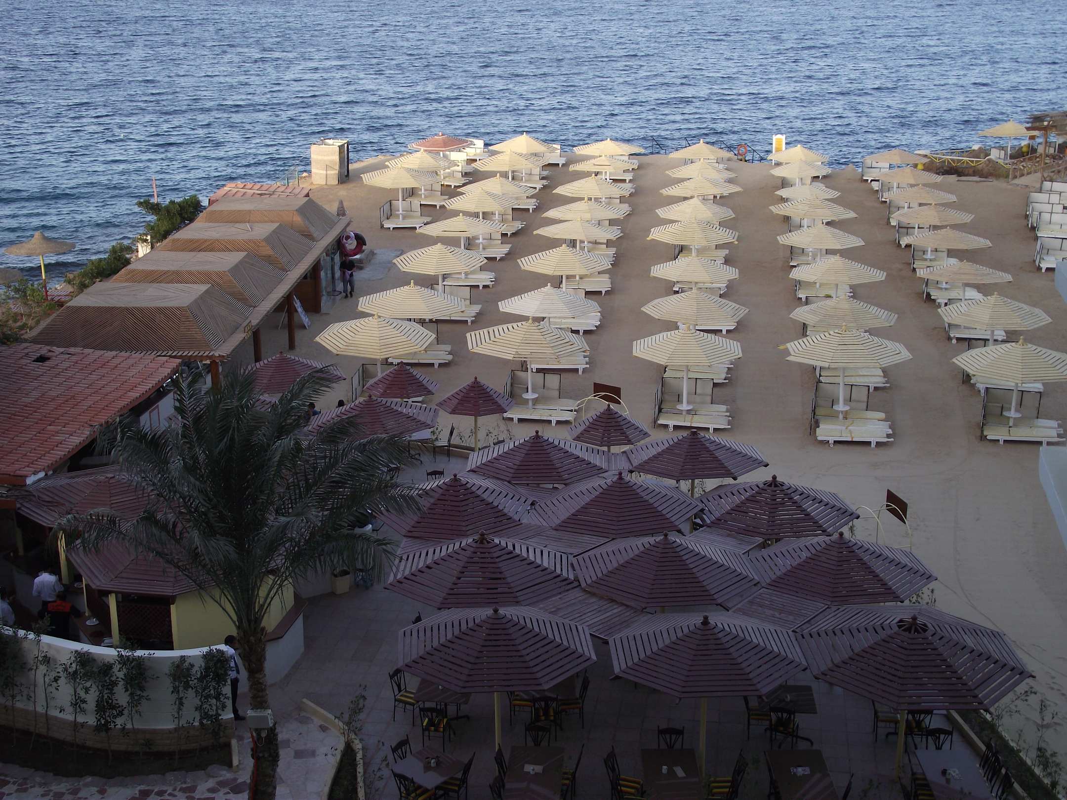 Beach and beach bar area just before sunset.