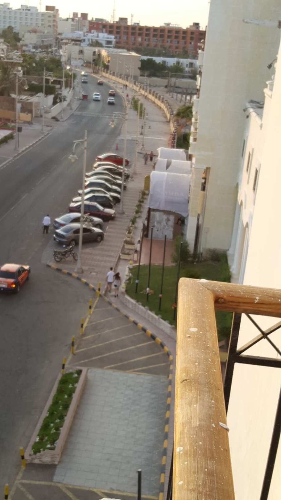 Ausblick vom Balkon auf die Straße