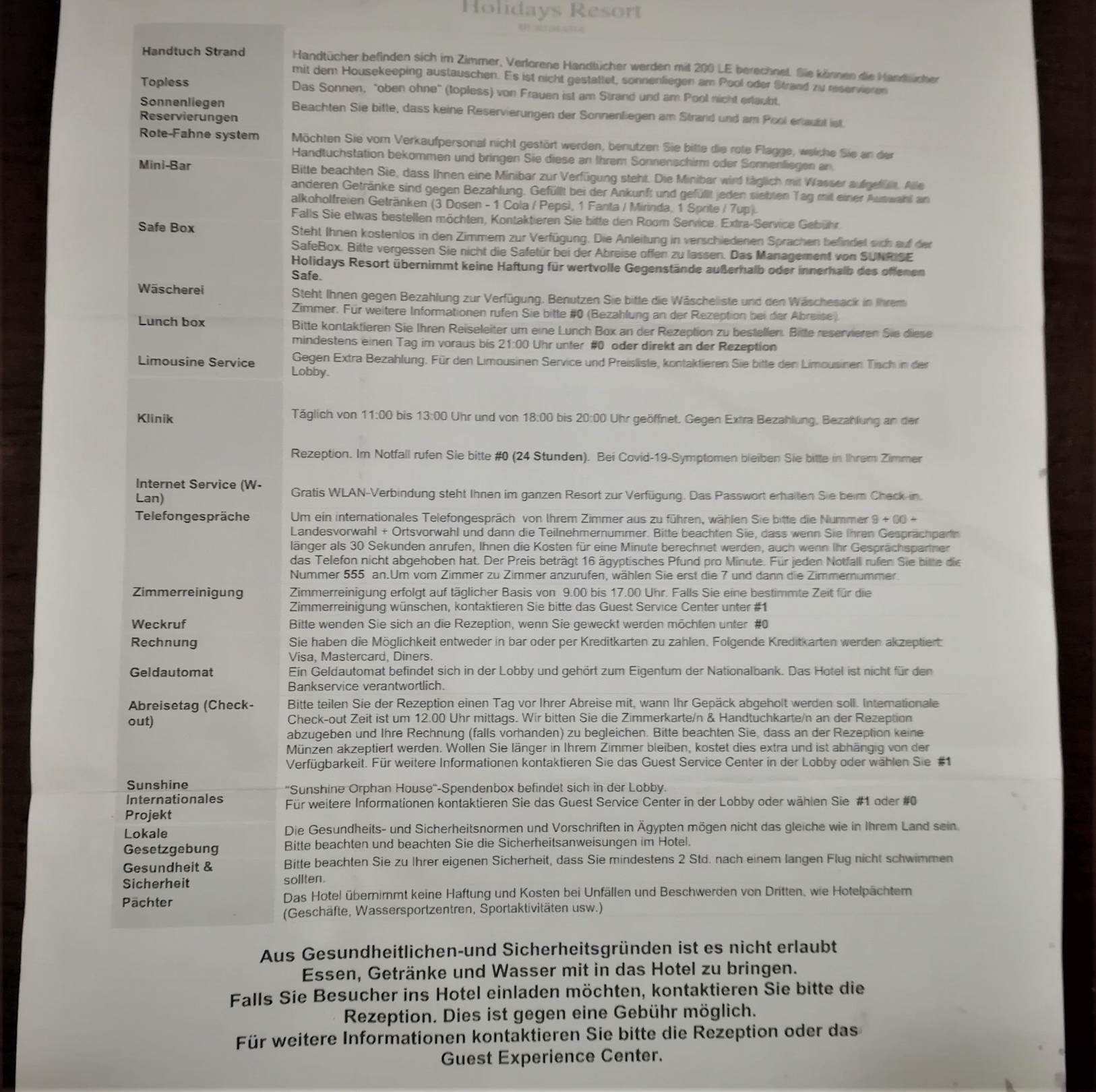 Was auf diesen Zettel steht sollte man nicht alles glauben fängt schon bei der Minibar an !!!