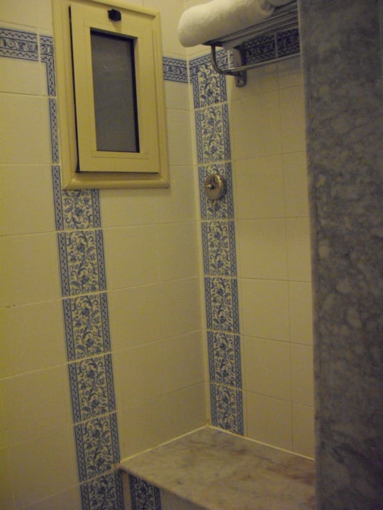 Dusche, mit Ablage für Handtücher und Diverses