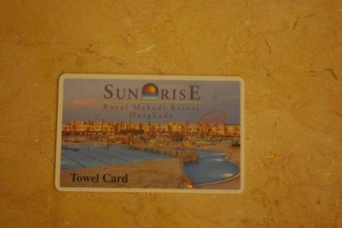 Beim Check-In bekommt man pro Person eine Badetuchkarte. Die tauscht man gegen ein Badetuch an der Ausgabe. Davon gibt es zwei. eine am Strand, die andere am Pool. Verlust der Karte wird mit ca. 10,- euro berechnet.