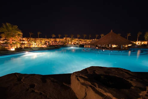 Poolanlage bei Nacht