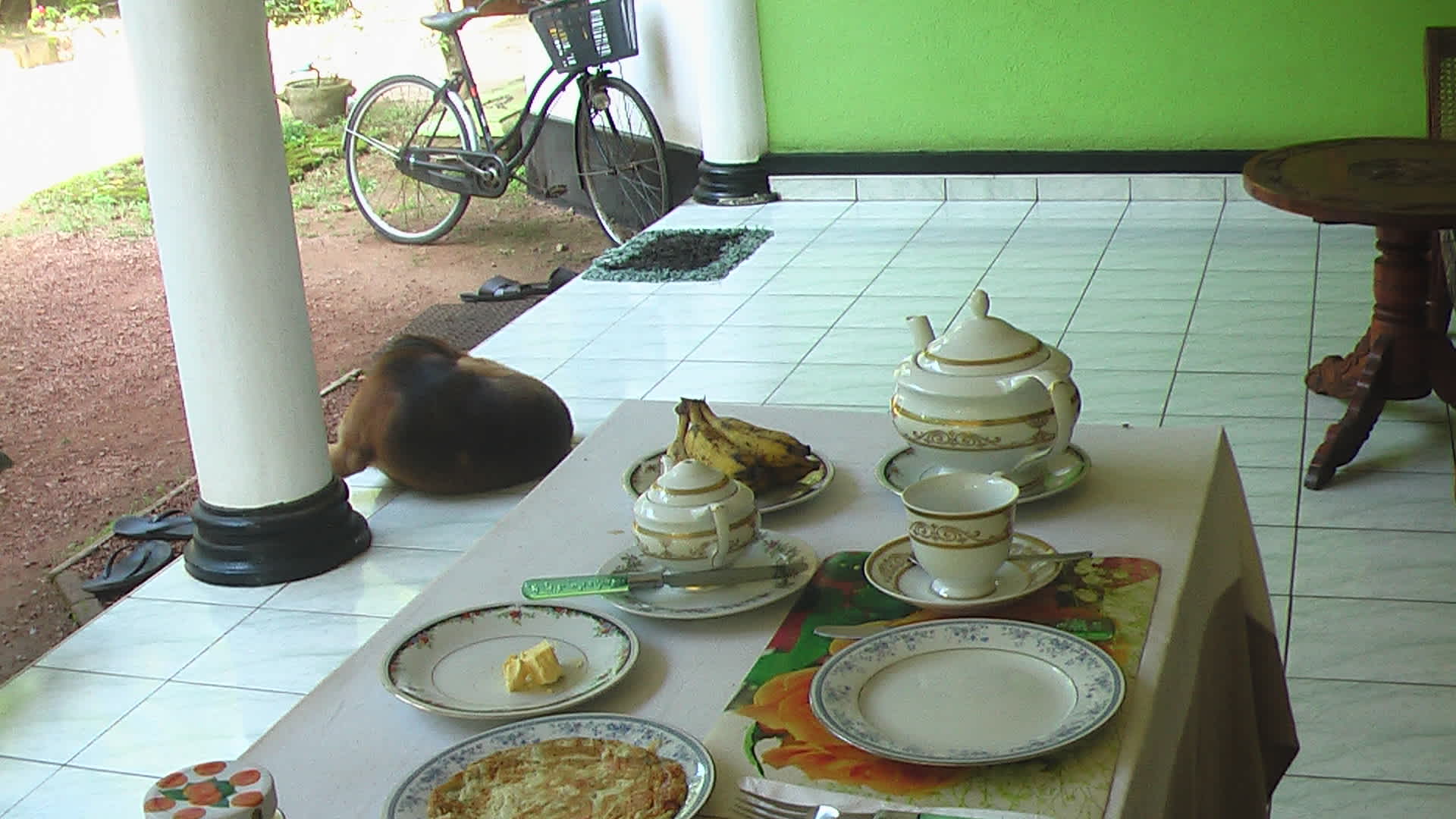 Hund Eddy wartet gerne bis man zum Frühstückstisch geht ...