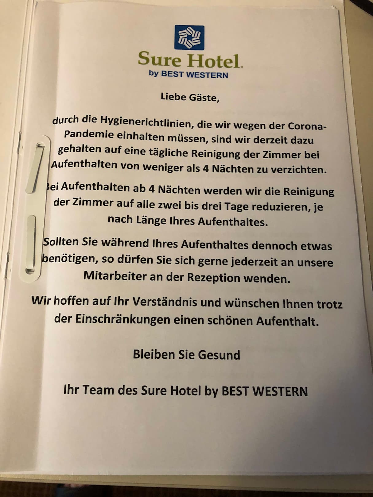 Erklärung, warum es keinen Zimmerservice gab
