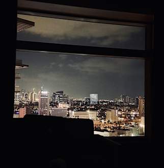 Nachtblick aus dem Zimmer im 15. Stock