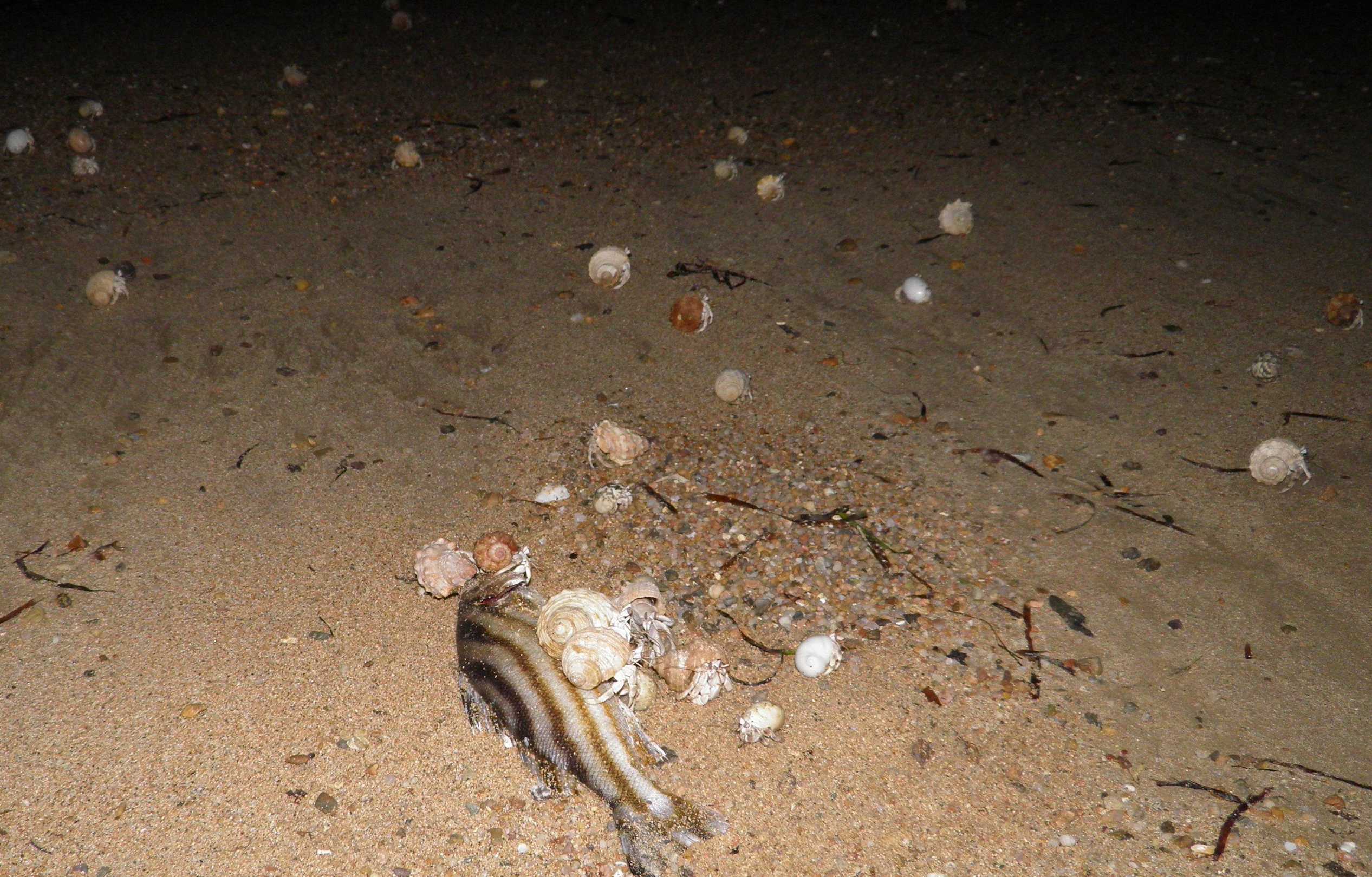 Die Krabben verspeisen einen Fisch
