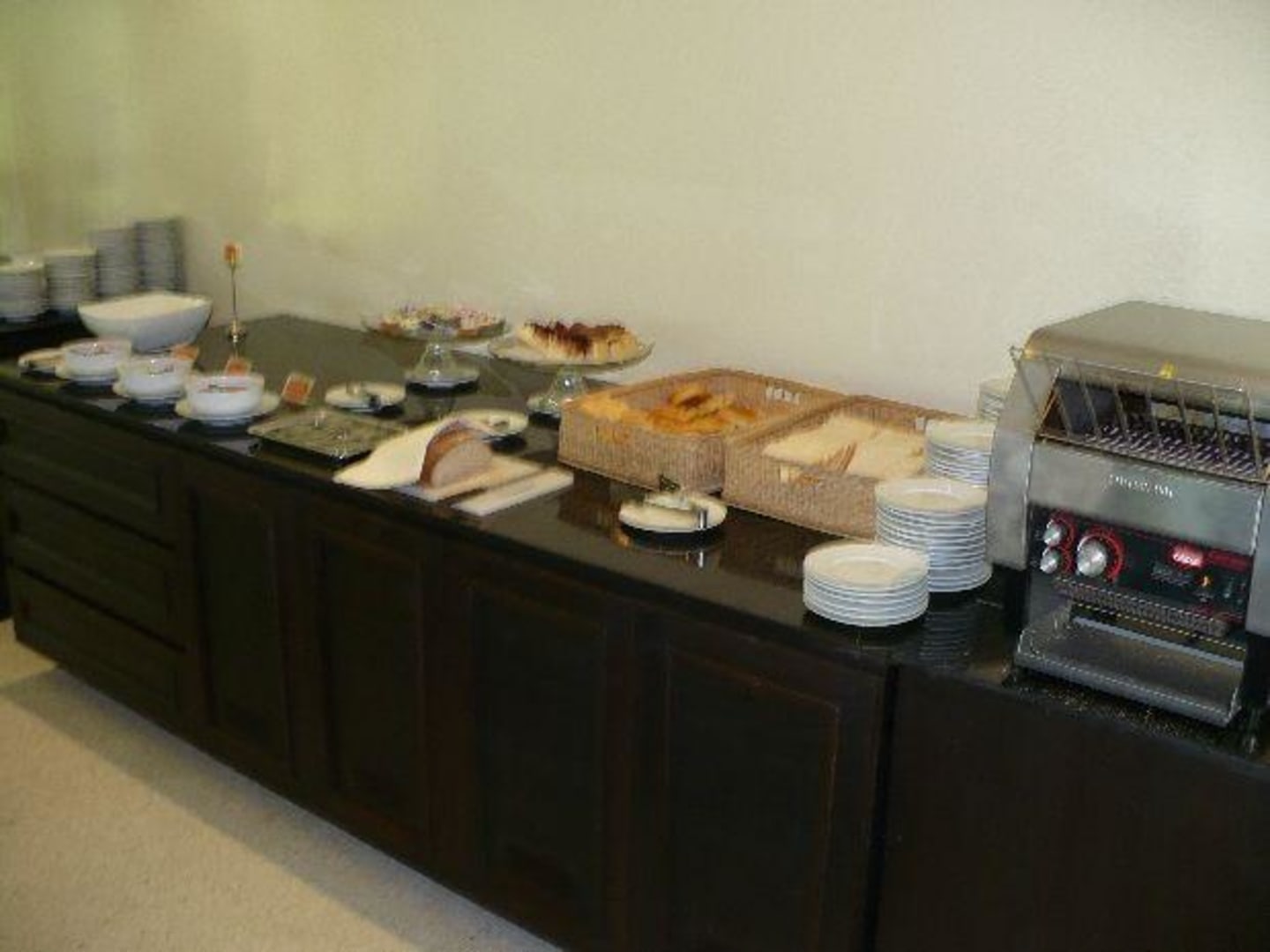 Frühstück: Toast, Croissants, Butter, Marmelade