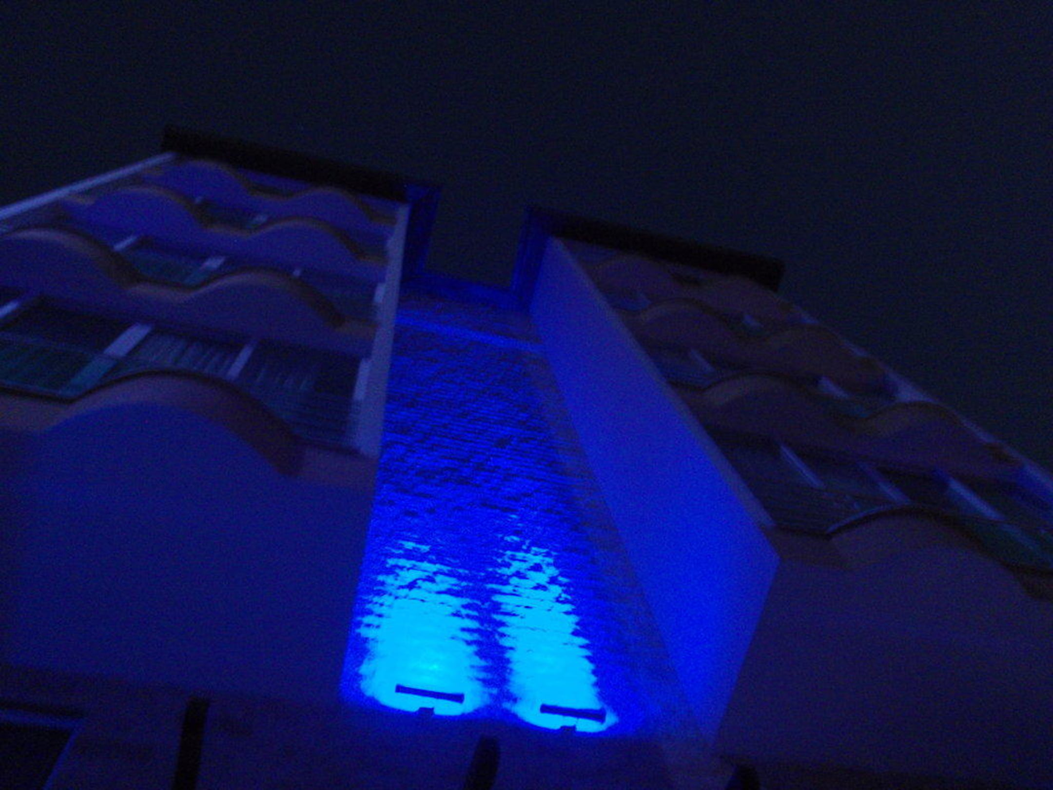 Abendaufnahme, vom Pool aus auf einen der sieben Blöcke..