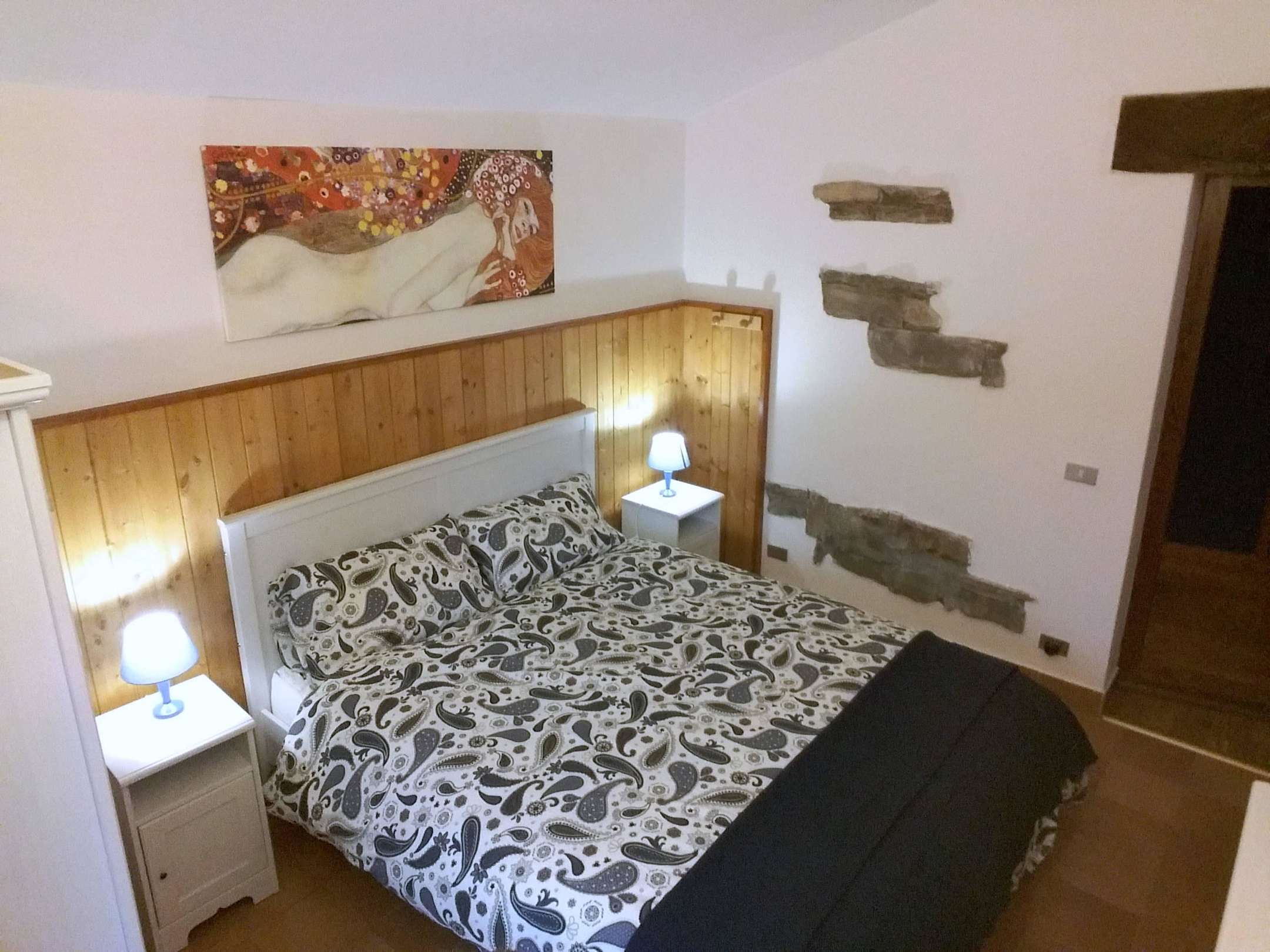 Bedroom with wood and local stones