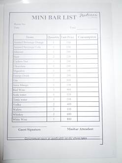 Minibar Preisliste