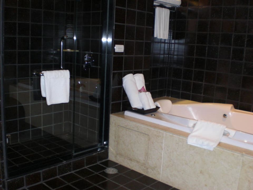 Im Gegensatz zu den Standartzimmern verfügt das Bad der Suite über Wanne und separate Dusche