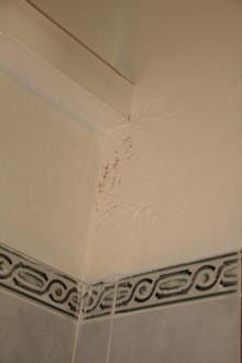 Viele Fecken an der Wand im Bad