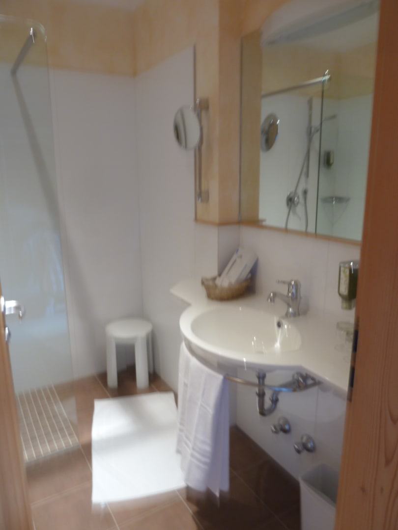 Toilettenartikel **** Sterne waren nur Shampoo aus dem Spender und Duschhauben. Keine Cremes, Zahnpasta, Lotions etc wie in anderen 4Sternhotels in Südtirol.