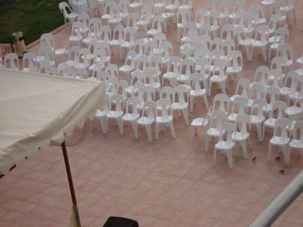 Hier wurden Abends die Stühle aufgestellt und morgens wieder weggestellt. Die Bühne war leider Winkelrechnisch, von unserem Zimmer aus, nicht zu sehen. Abends war es sehr laut.