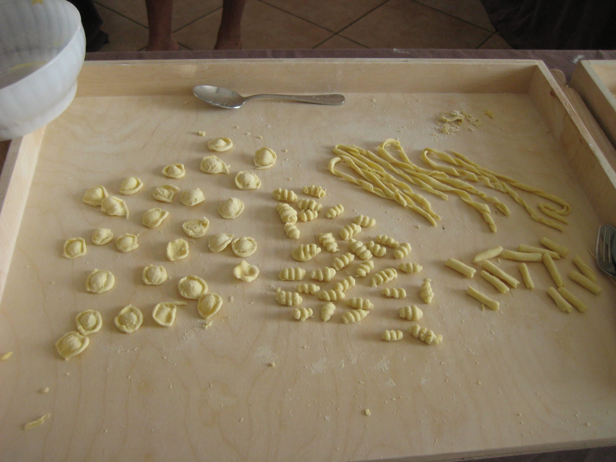 Das ergebnis unseres Pasta- Kochkurses wartet darauf gekocht zu werden - anschließend durften wir es mit frischer Tomatensauce & Käse genießen