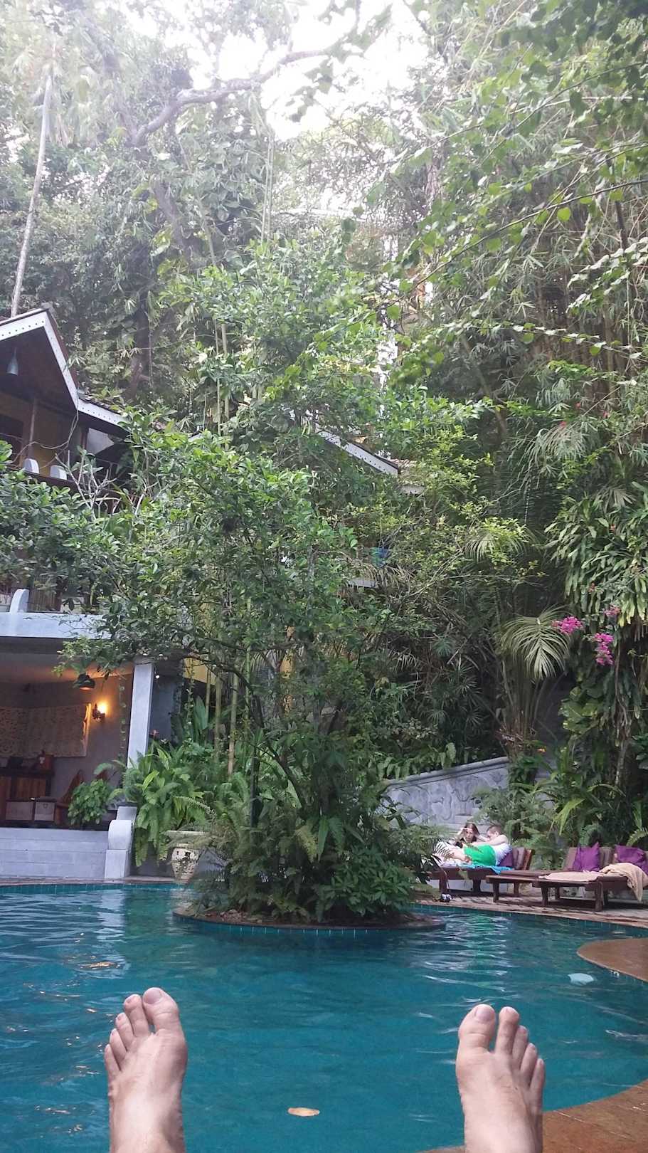 Widok na basen i recepcję