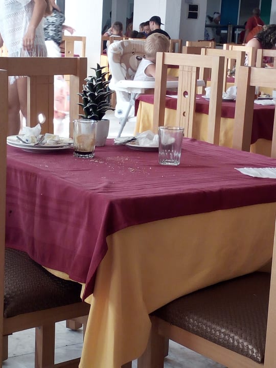 GastroTischdecken werden umgedreht und Tische werden spät abgeräumt.