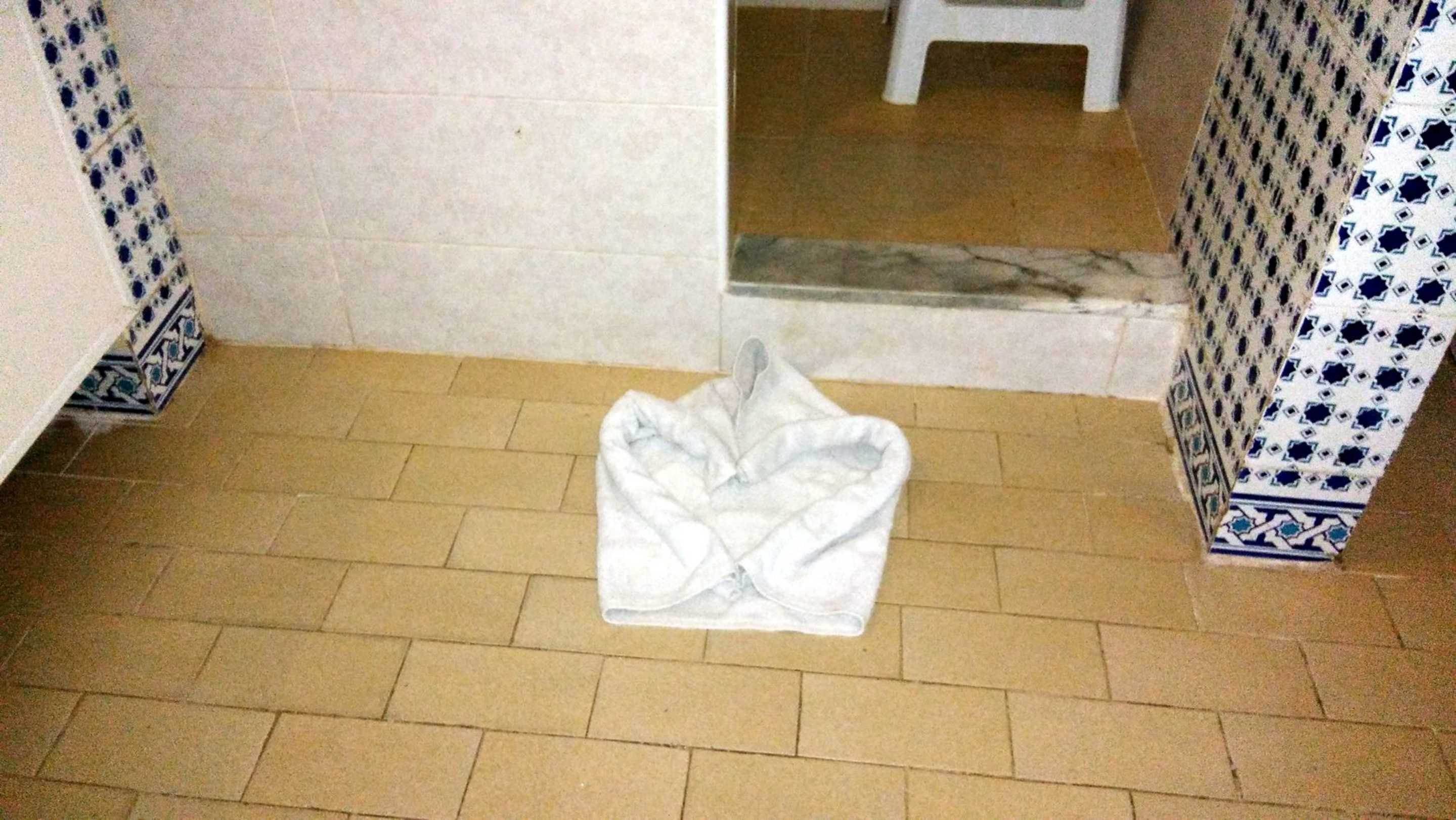 ZimmerDieses Mal wurde nicht meine Nachtbekleidung, sondern der Badvorleger täglich neu nett gestaltet.