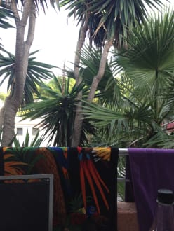 Schöne Palmen vor Balkon
