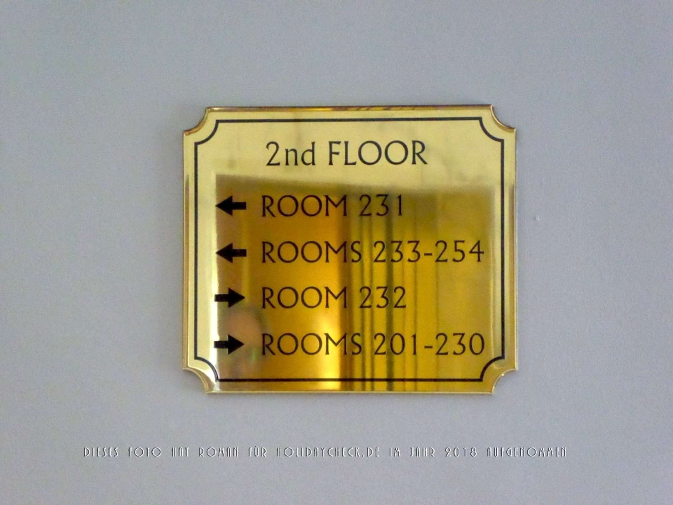 Wegweiser zu den Zimmern im 2. Obergeschoss.