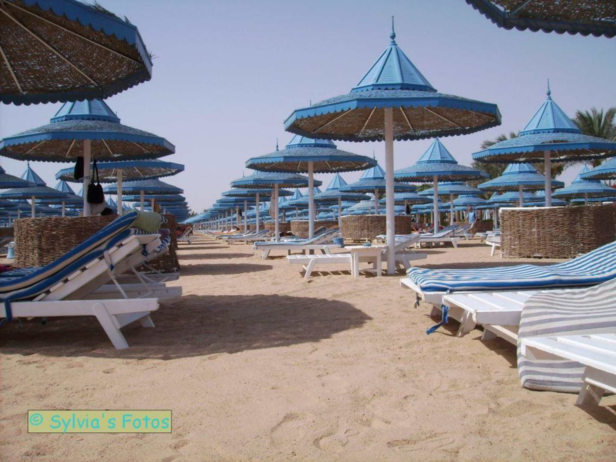 Der Strand des Grand Hotels ist groß. Jede Menge Liegen, eigentlich muss man hier nicht morgens um die Wette laufen, um eine freie Liege zu reservieren.