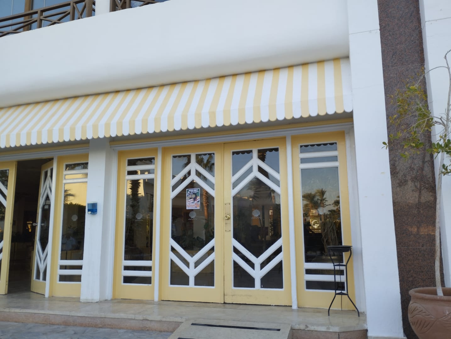 Aussenansicht, Hotel-Lobby von der Terasse