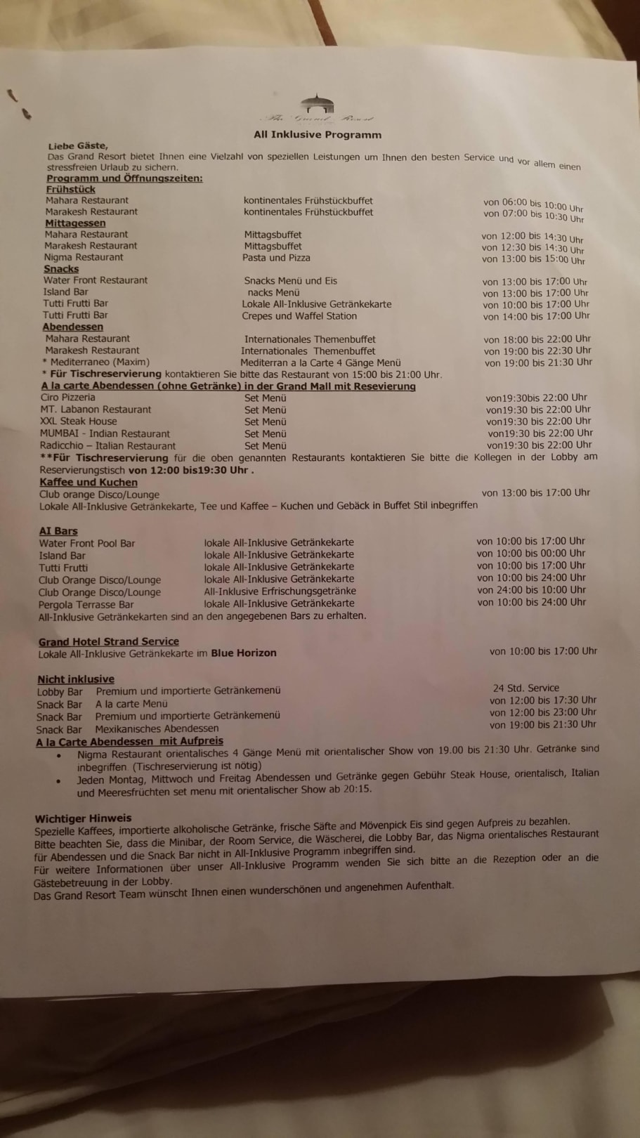 All-Inklusive Leistungen und Info's