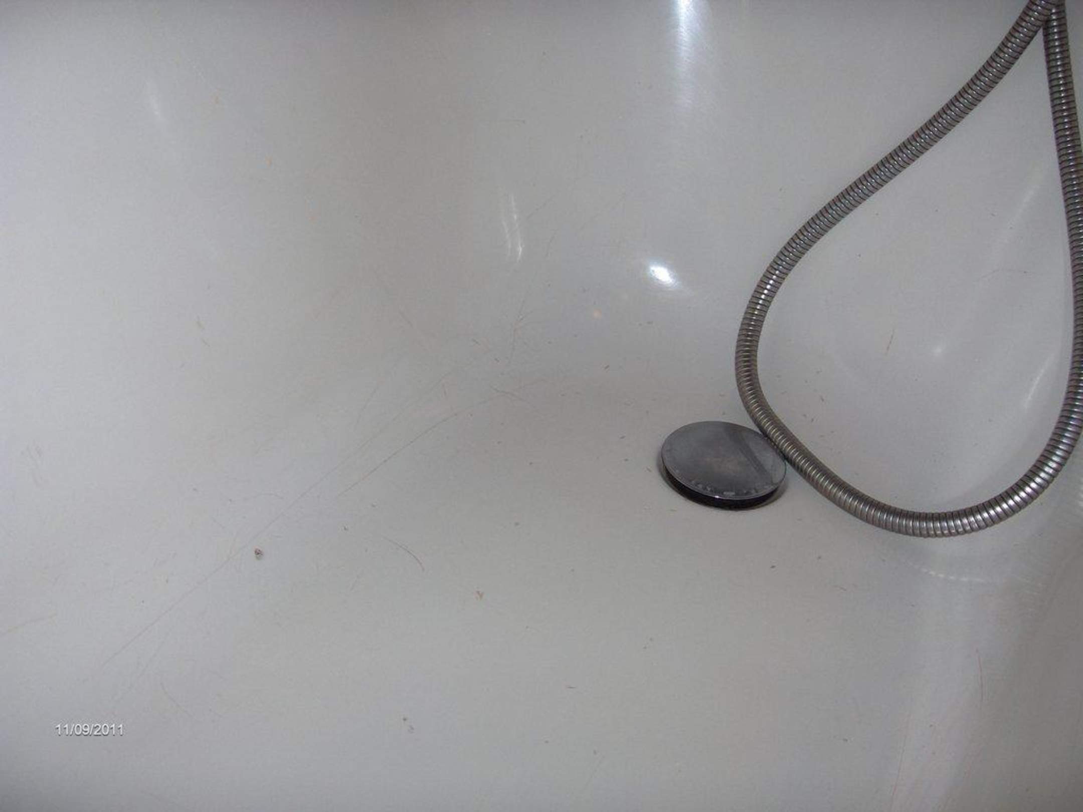 In der Badewanne sind Stellen abgeplatzt und auch Haare vom Vorgänger befinden sich hierin.