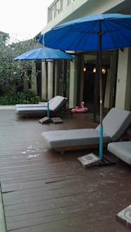 Die "wunderschöne" Terrasse am Pool