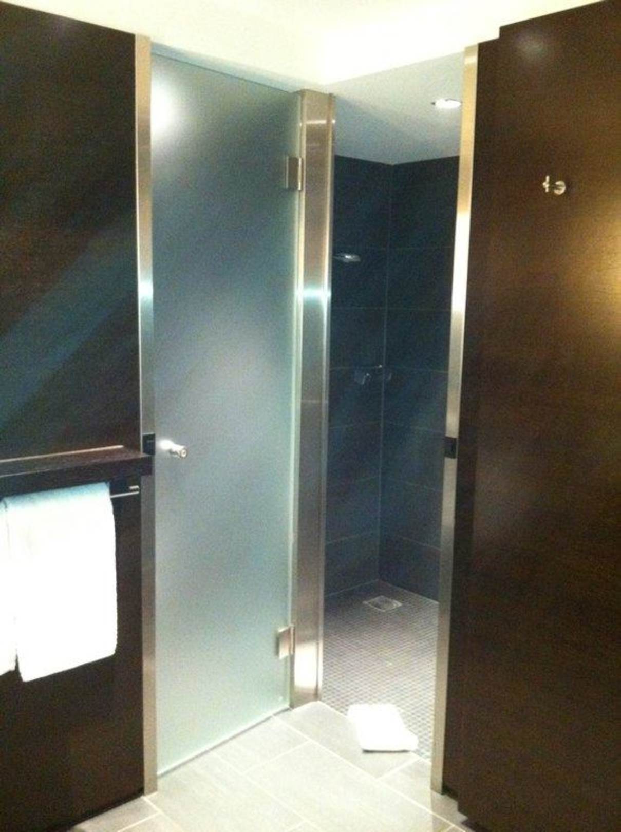 Teilansicht Badmodern gestaltetes Bad. gr. Dusche und Toilette getrennt und verschließbar