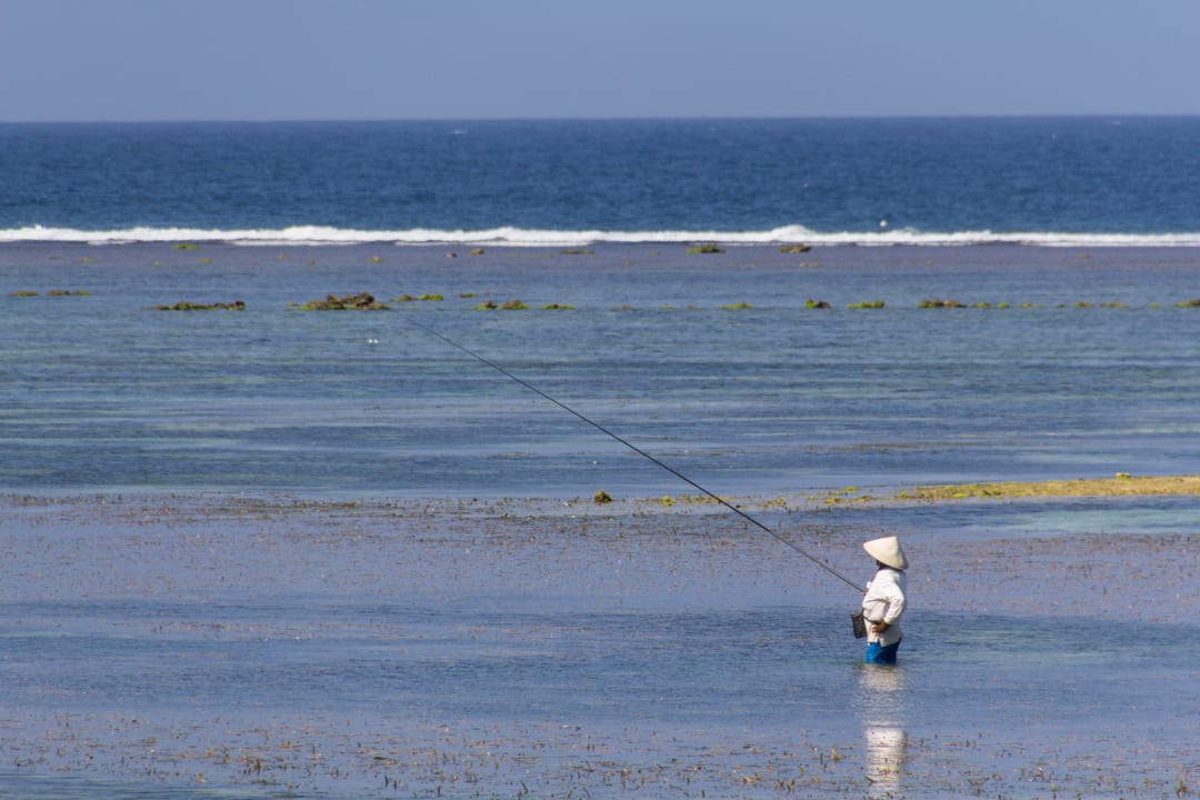 Balinesischer Fischer bei Ebbe