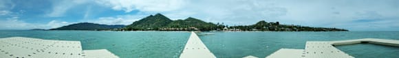 Panoramablick vom Steg auf die Bucht von Lamai