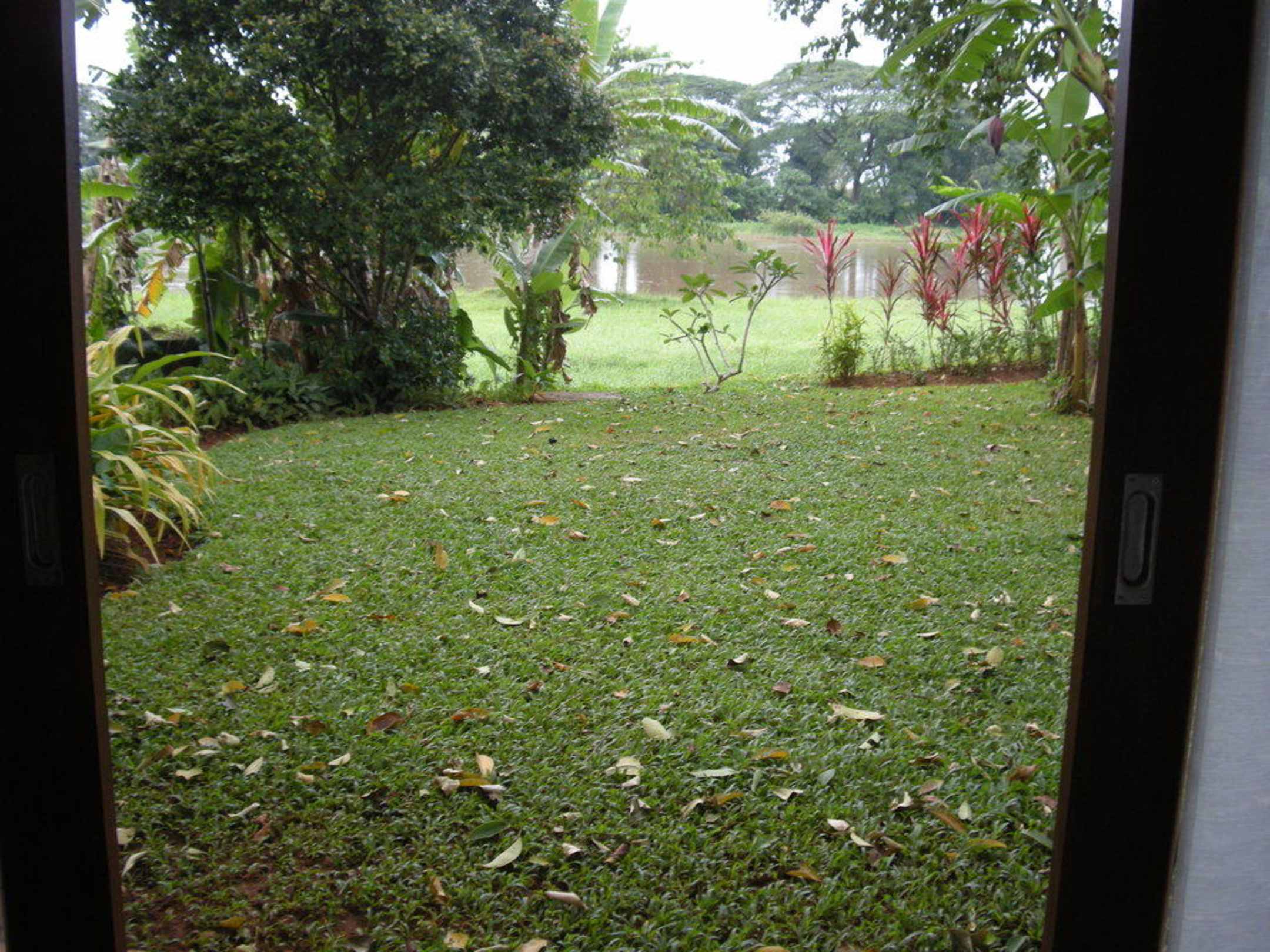 Gartenanlage und im Hintergrund der Kok River