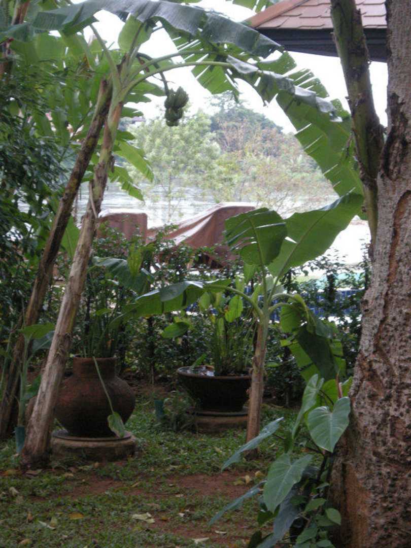 Gartenanlage und im Hintergrund der Kok River