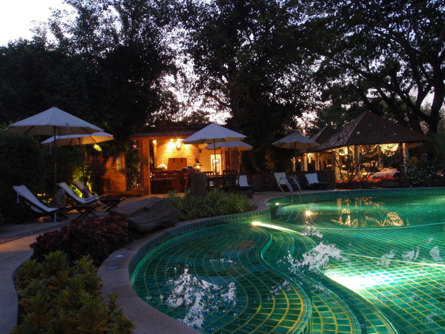 Schöner Pool mit Blick auf den Mae Kok River