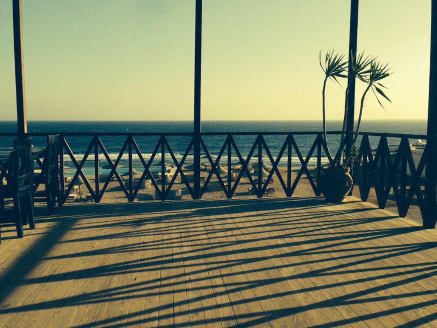 Blick vom Restaurant auf Pool und Meer