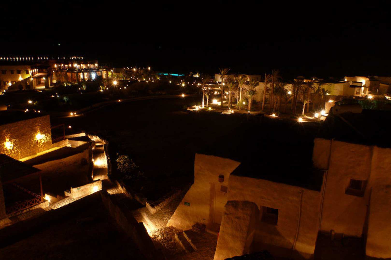 Nachtaufnahme der Hotelanlage.