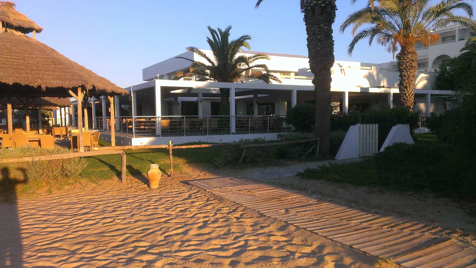 Strand am Morgen mit Restaurant