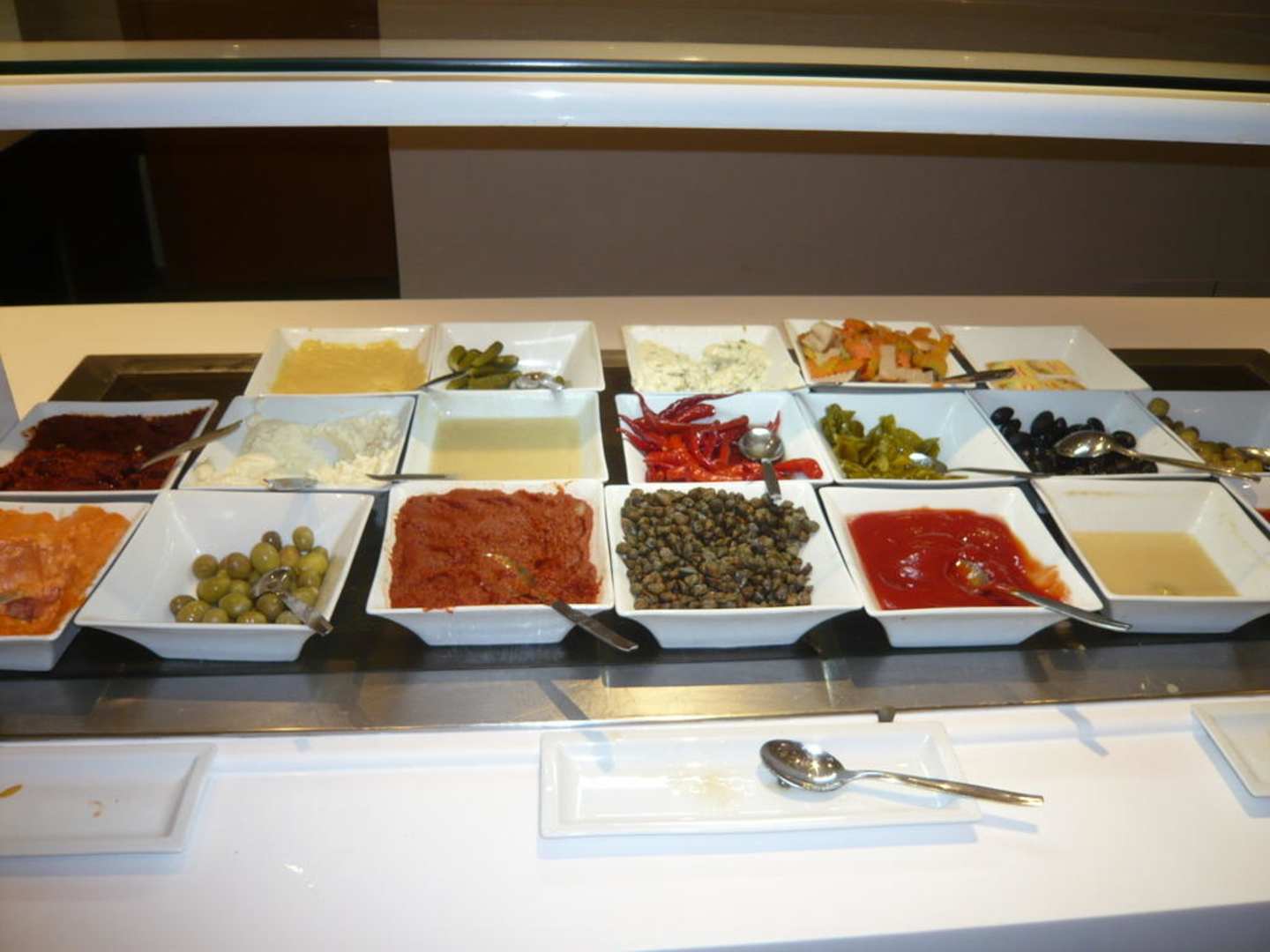 Soßen, Oliven, Pepperoni, etc.