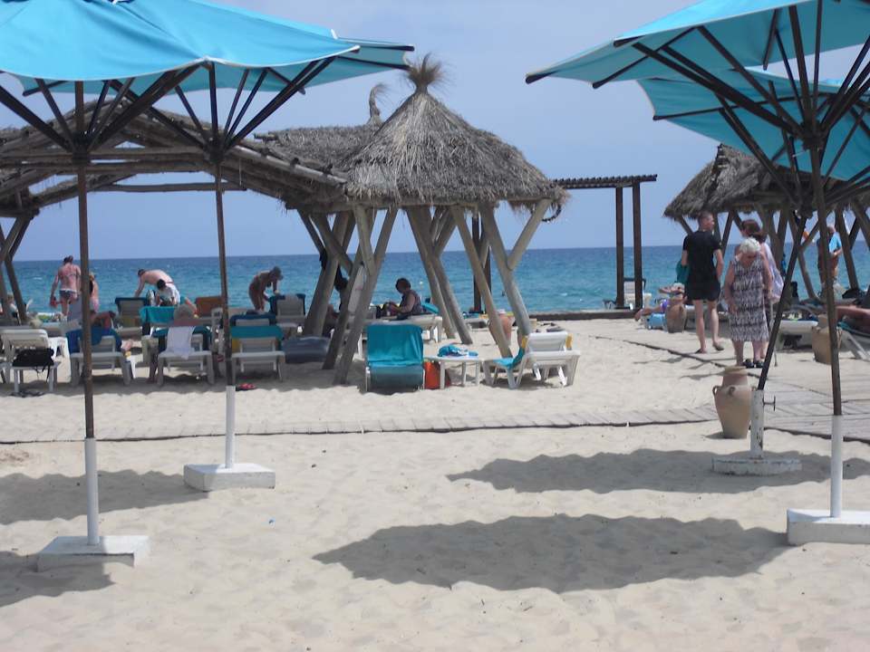 Hotelstrand mit hoteleigenen Liegen